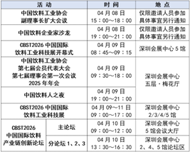 中国饮料工业协会第七届会员代表大会及2025年年会等系列活动,定于2026年04月09~11日在深圳举行。