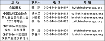 参会代表可关注中饮协官网(www.chinabeverage.org)与“中国饮料工业协会”微信公众号,查看更多会议信息。