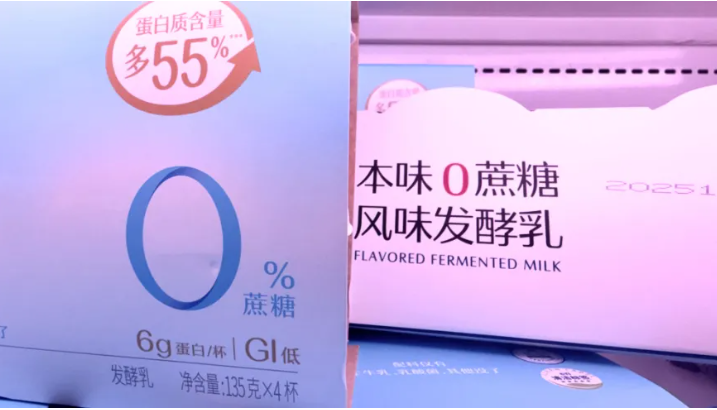 12月4日,在北京某商超酸奶冷柜中,带有“0蔗糖”等标签的商品占据主流位置。新华网记者 刘璐 摄