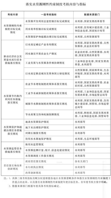 第一条 为推动落实水资源刚性约束制度,强化水资源节约集约安全利用,改善河湖生态环境,把水资源开发利用控 制在承载能力范围内,使有限的水资源有效支撑和保障高质量发展,根据实行水资源刚性约束制度的要求和有关规 定,制定本办法。 第二条 本办法适用于对各省(自治区、直辖市)人民政府落实水资源刚性约束制度情况的考核。 第三条 考核工作应坚持目标导向、问题导向,科学设置考核指标;坚持依法依规、精简高效,简化优化考核内容; 坚持以考促干、注重实效, 强化考核结果运用。 第四条 水利部会同国家发展改革委、工业和信息化部、财政部、自然资源部、生态环境部、住房城乡建设部、农业 农村部、市场监管总局、国家统计局、国管局等部门组成考核工作组,负责具体组织实施。 第五条 考核内容为水资源刚性约束制度目标完成情况,推动经济社会发展量水而行、水资源节约集约利用、水资源 保护和超载治理、水资源监管等任务措施落实情况,以及责任落实和改革创新情况。考核内容及一级考核指标见附件。 第六条 考核评定采用评分法,满分为100分。考核结果划分为优秀、良好、合格、不合格四个等级。考核得分90分 以上为优秀,80分以上90分以下为良好,60分以上80分以下为合格,60分以下为不合格。(以上包括本数,以下不 包括本数)落实水资源刚性约束制度不力导致水资源状况恶化的省(自治区、直辖市),年度考核结果不得评为良好 及以上等级。 第七条 考核每年开展一次,水利部会同考核工作组其他成员单位制定年度考核方案及指标评分细则。 第八条 各省(自治区、直辖市)人民政府按照年度考核方案开展自评,按时将本地区上年度的自评报告报国务院, 并抄送考核工作组各成员单位。 第九条 考核工作组各成员单位按照年度考核方案和工作职责对各省(自治区、直辖市)进行核查评分,并充分运 用信息化手段和日常监管掌握的情况,提升考核效能,切实减轻基层负担。进行实地核验的,严格按照有关规定 执行。 第十条 水利部结合地方自评,根据考核工作组各成员单位的核查评分进行综合评价,提出考核等级建议,形成年 度考核结果,并会同有关部门于每年6月底前将上一年度考核结果报国务院审定。 第十一条 年度考核结果经国务院审定后,由水利部向各省(自治区、直辖市)人民政府反馈,并向社会公告。 第十二条 经国务院审定的年度考核结果,交由干部主管部门作为对各省(自治区、直辖市)人民政府主要负责 人和领导班子综合考核评价的重要参考。同时,水利部将考核结果作为安排有关中央资金的重要参考依据。 第十三条 对在落实水资源刚性约束制度工作中取得显著成绩的单位和个人,按照国家有关规定在有关表彰奖励 中给予考虑。考核结果为不合格的省(自治区、直辖市)人民政府,要在考核结果公告后一个月内,提出限期 整改措施,向国务院作出书面报告,并抄送考核工作组各成员 单位。考核中发现或整改中出现重大失职失责情况的,依规依纪依法对有关单位和个人予以问责追责。 第十四条 对考核发现的具体问题,考核工作组各成员单位按照工作职责,督促相关省(自治区、直辖市)限期 整改。对整改不力的,采取函告、通报、约谈等措施加强督促整改。问题整改情况纳入下一年度考核。 第十五条 在考核工作中存在徇私舞弊、谎报瞒报、篡改数据、伪造资料等行为,造成考核结果严重失真失实的, 有关省(自治区、直辖市)考核结果直接确定为不合格,并按照有关规定严肃追究相关单位和人员责任。 第十六条 考核工作严格落实党中央关于整治形式主义为基层减负的有关要求。考核工作人员严格执行中央八项 规定及其实施细则精神,遵守考核工作纪律,严禁滥用职权、以权谋私。对违反纪律的,依规依纪依法问责追责。 第十七条 本办法由水利部负责解释。 第十八条 本办法自印发之日起施行。2013年1月2日经国务院同意、由国务院办公厅印发的《实行最严格水资源 管理制度考核办法》(国办发〔2013〕2号)同时废止。